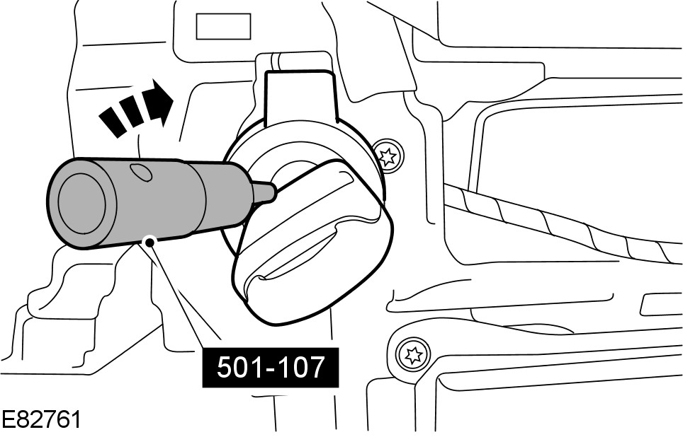 - Rotate the special tool counter clockwise to secure the ignition lock cylinder to the ignition lock cylinder housing.