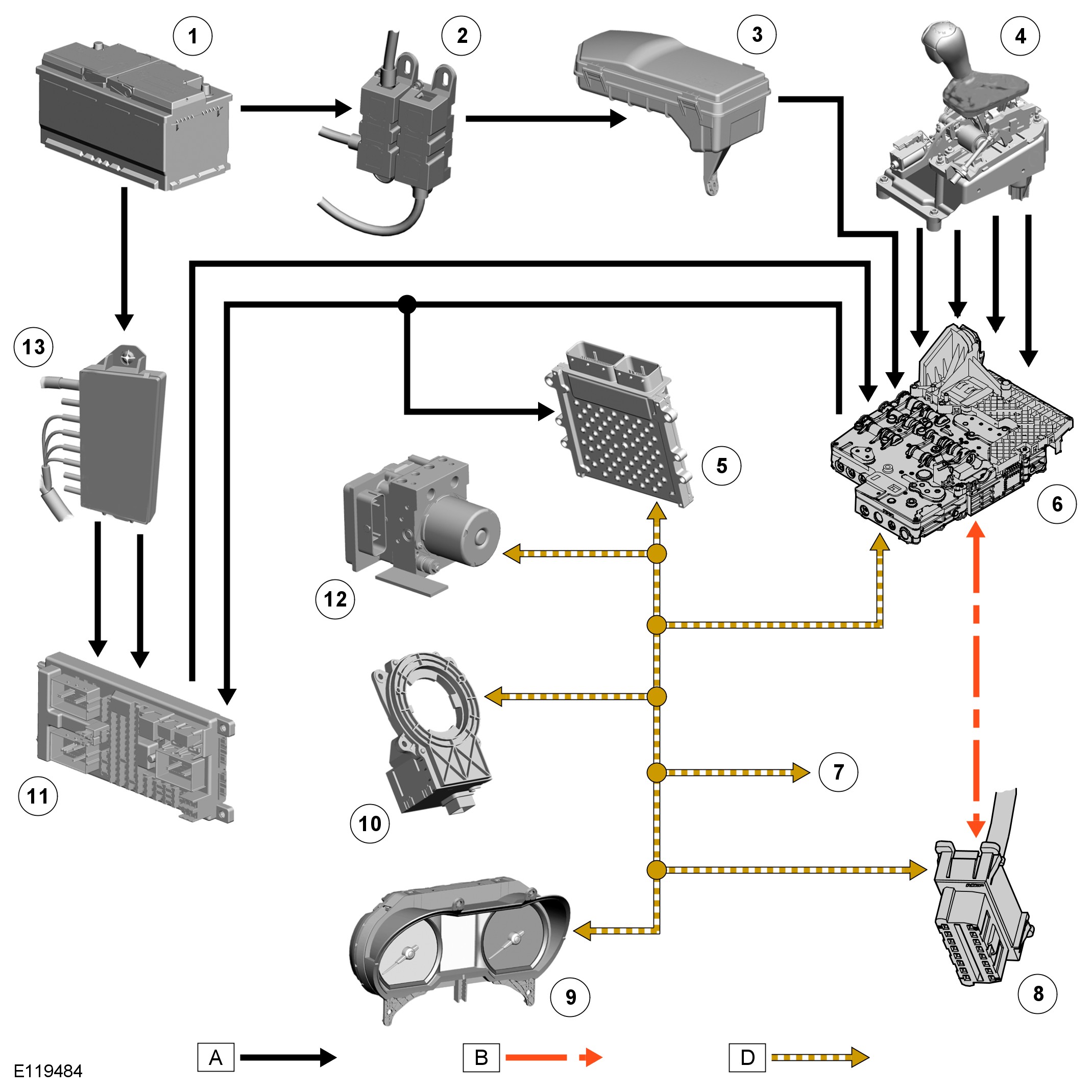 A = Hardwired; B = K bus; D = High speed CAN (controller area network) bus.