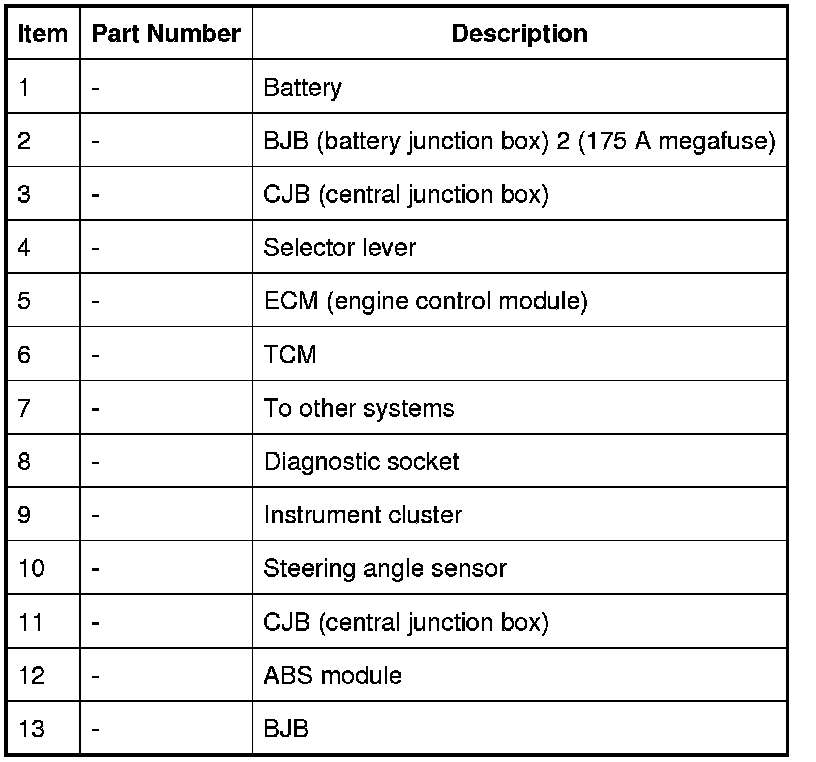 The ECM (engine control module) supplies the engine management data over the high speed CAN (controller area network) bus. The TCM (transmission control module) requires engine data to efficiently control the transmission operation, for example; flywheel torque, engine speed, accelerator pedal angle, engine temperature. The steering angle sensor and the ABS (anti-lock brake system) module also supply data to the TCM (transmission control module) on the high speed CAN (controller area network) bus. The TCM (transmission control module) uses data from these systems to suspend gear changes when the vehicle is cornering and/or the ABS (anti-lock brake system) module is controlling