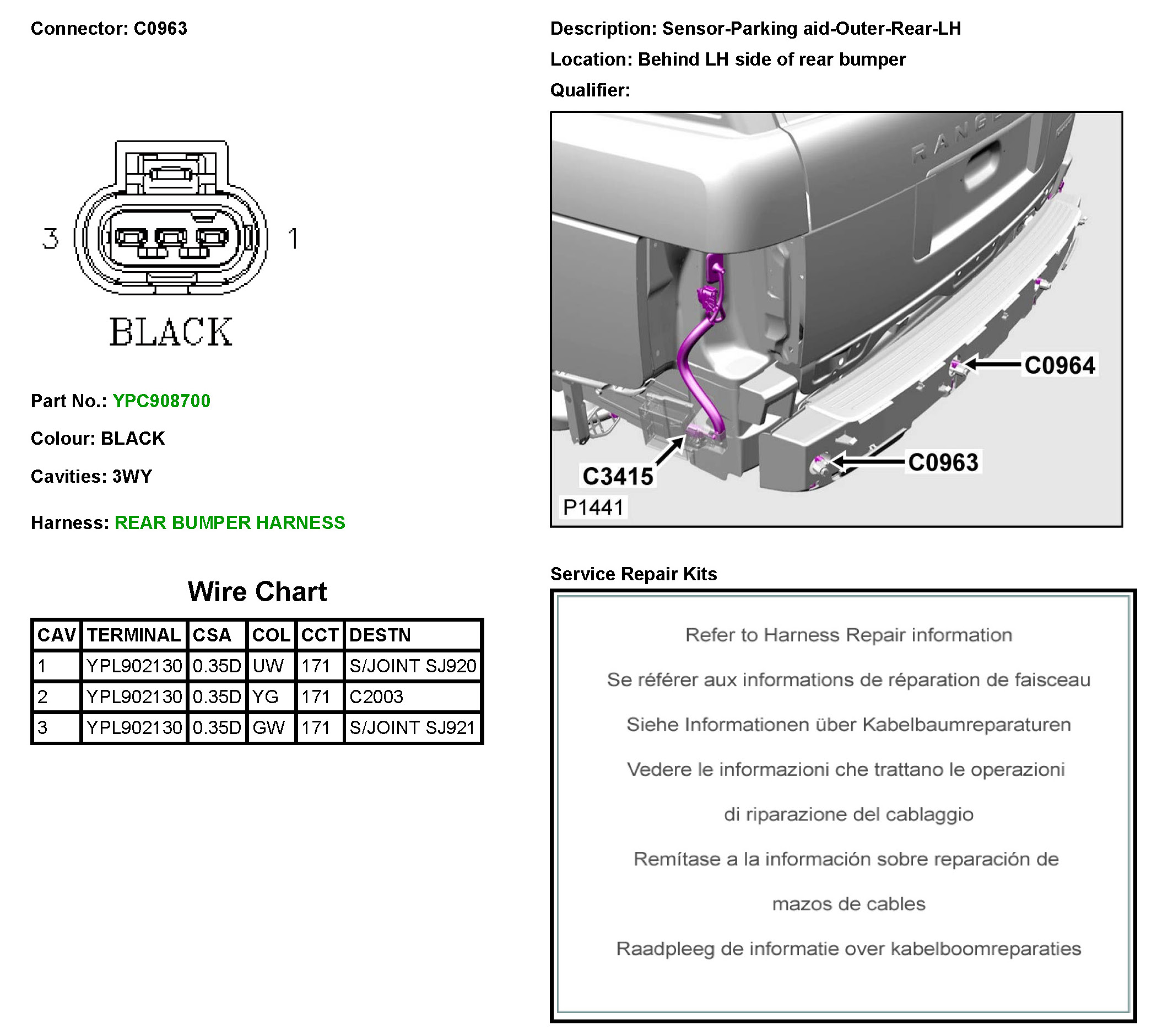 C0963 Sensor-Parking aid-Outer-Rear-LH