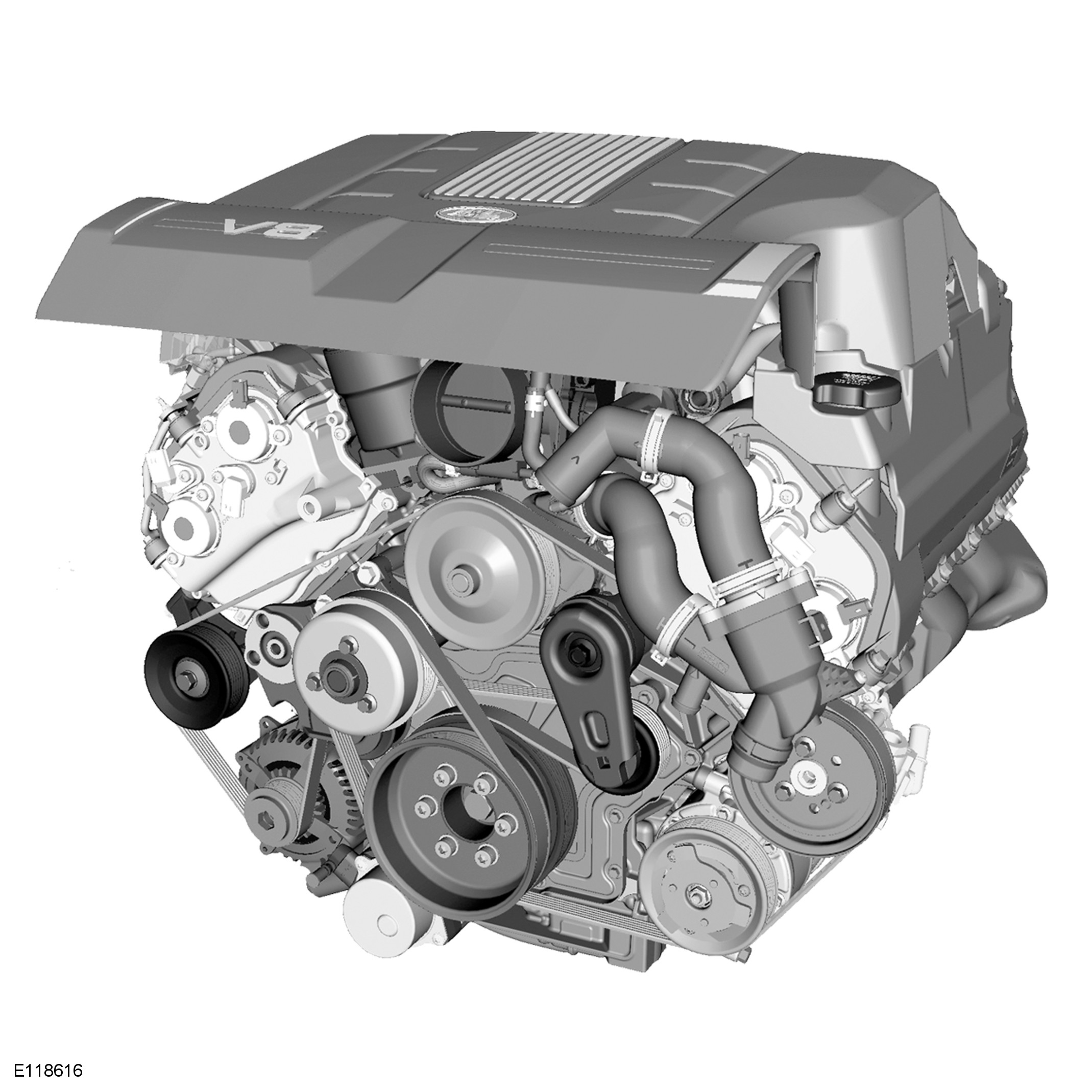 The 5.0L NA (naturally aspirated) gasoline engine is a liquid cooled V8 unit featuring direct fuel injection, four overhead camshafts and four valves per cylinder. All four camshafts incorporate VCT (variable camshaft timing). The intake camshafts and valves also incorporate CPS (camshaft profile switching).