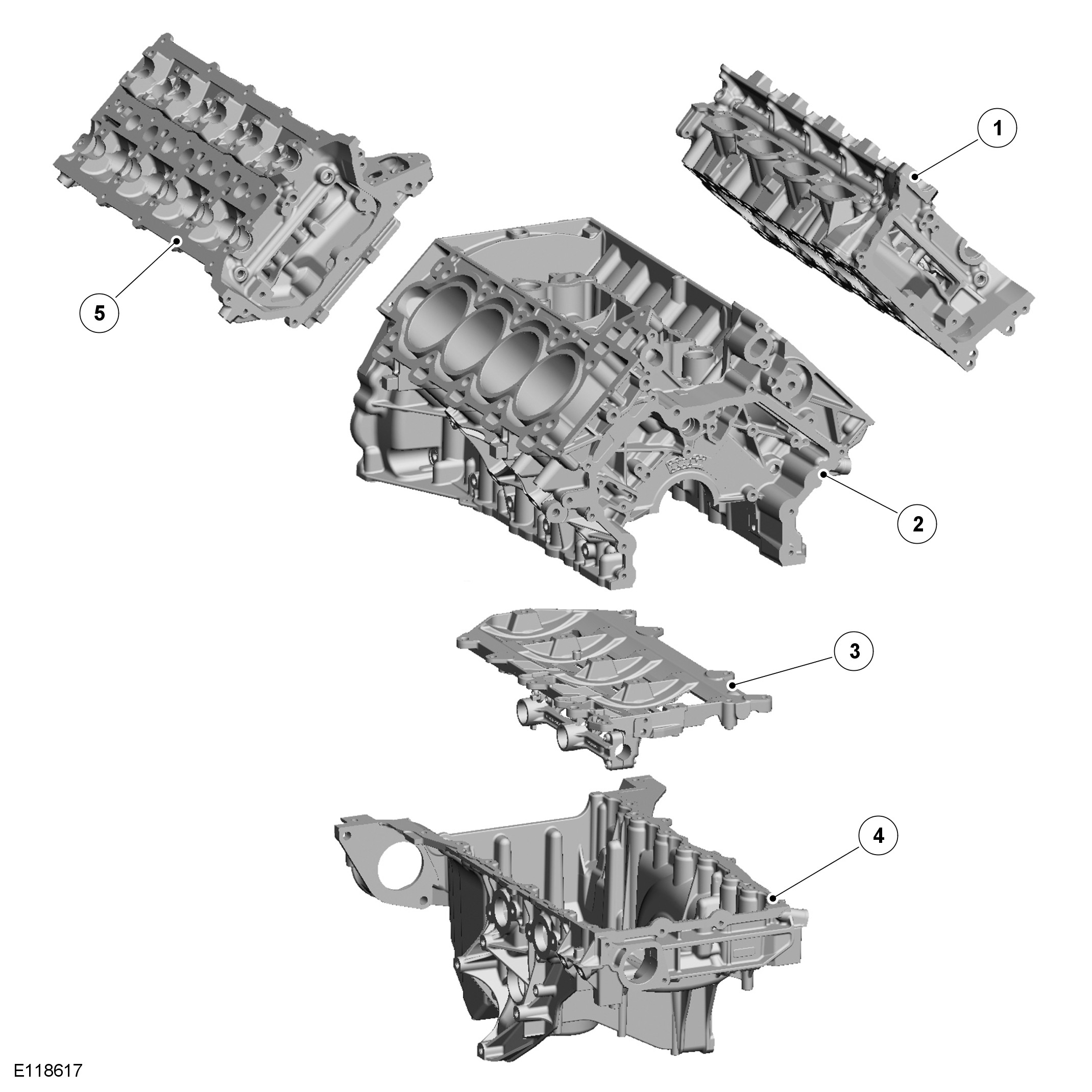 The cylinder heads are manufactured in gravity die cast aluminum alloy and are unique for each cylinder bank. Deep-seated bolts reduce distortion and secure the cylinder heads to the cylinder block.