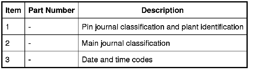 The main bearings are numbered 1 to 5 starting from the front of the engine. There are five grades of main bearing available, each being color coded. Journal sizes are marked on the rear of the crankshaft. For additional information, refer to Crankshaft Main Bearing Journal Clearance Crankshaft Main Bearing Journal Clearance