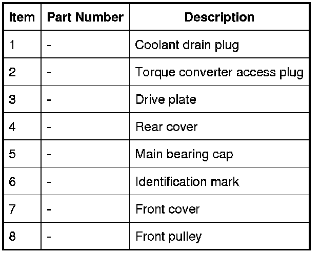 The main bearing caps are made from cast iron and are cross bolted to increase rigidity. An identification mark on the bearing cap faces the front of the engine.
