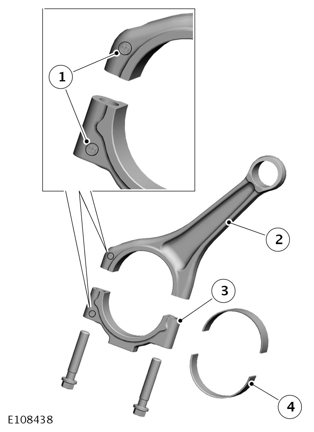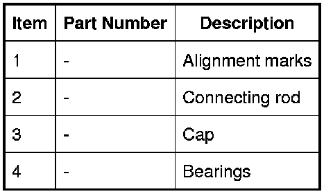 The connecting rods are forged from high strength steel. The cap is fracture-split from the rod to ensure precision re-assembly for bearing shell alignment. There are three grades of large end bearing available, each being color coded. For additional information, refer to Connecting Rod Large End Bore Connecting Rod Large End Bore