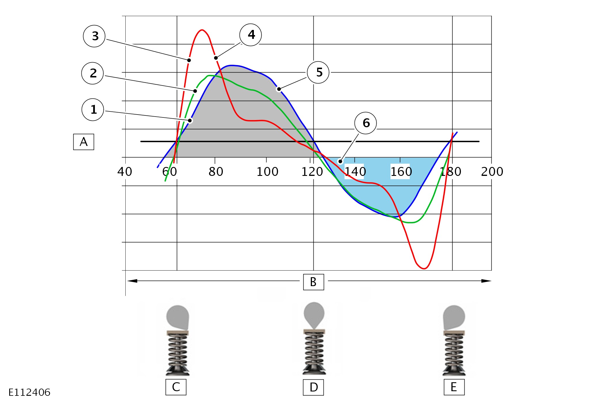 At engine speeds from idle up to the range of 2825 - 4250 rev/min (depending on engine load), the CPS solenoids are de-energized and the switchable tappets are set to low lift. At engine speeds above the 2825 - 4250 rev/min range, the CPS solenoids are energized by the ECM (engine control module) and the switchable tappets are set to high lift. There is a 200 rev/min hysteresis when switching from high lift to low lift with decreasing engine speed. Switching between lift settings occurs within one revolution of the camshaft.