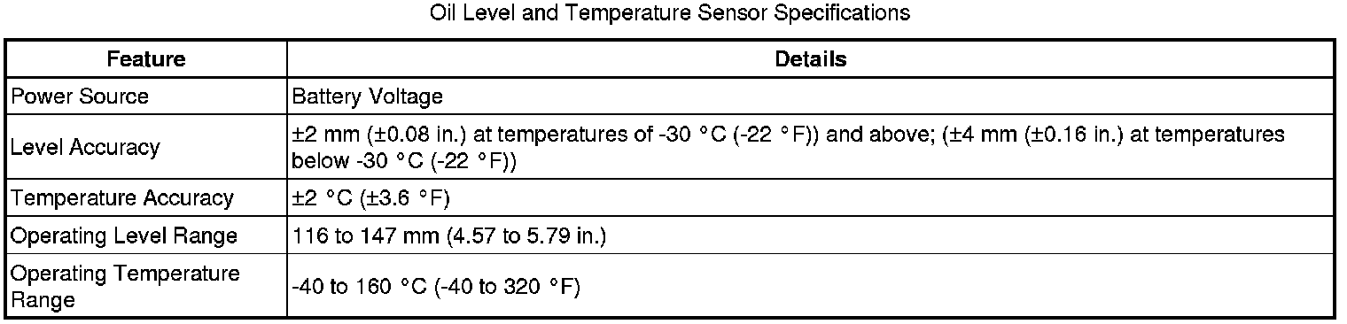The oil level and temperature sensor supplies the ECM (engine control module) with a signal containing the level and temperature of the oil in the sump. The oil level and temperature sensor is secured to the bottom of the sump with three screws and sealed with a gasket.