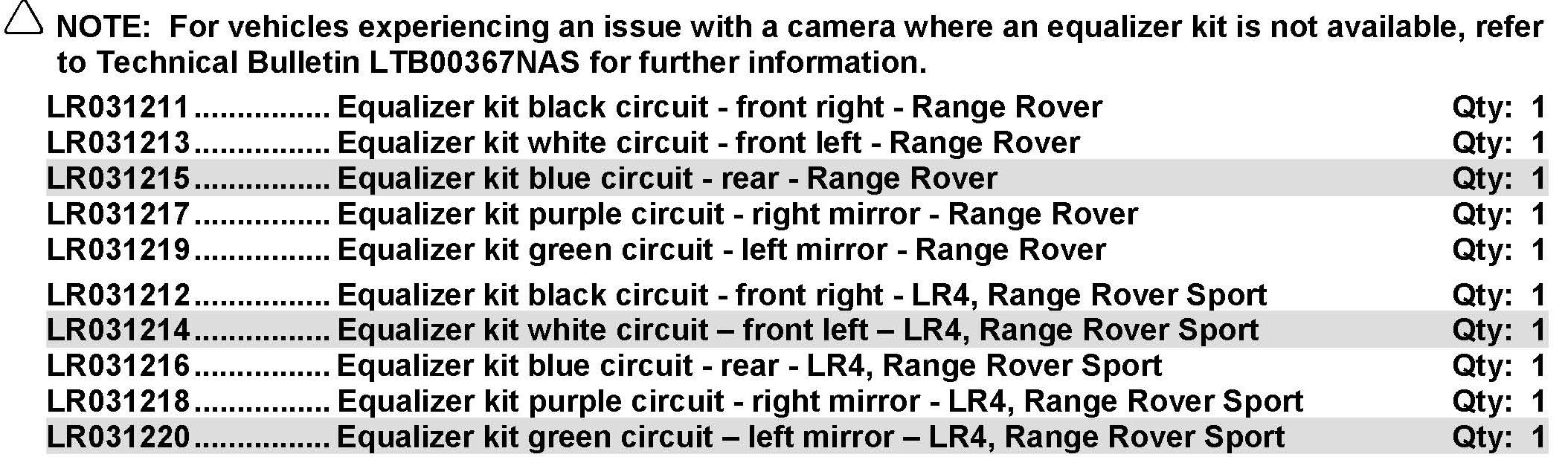 For Range Rover vehicles experiencing a rear camera blue screen concern and eligible for Service Action Q140, perform the Repair Procedure as described in Technical Bulletin Q140NAS. For vehicles experiencing an issue with a camera where an equalizer kit is not available, refer to Technical Bulletin LTB00367NAS for further information.