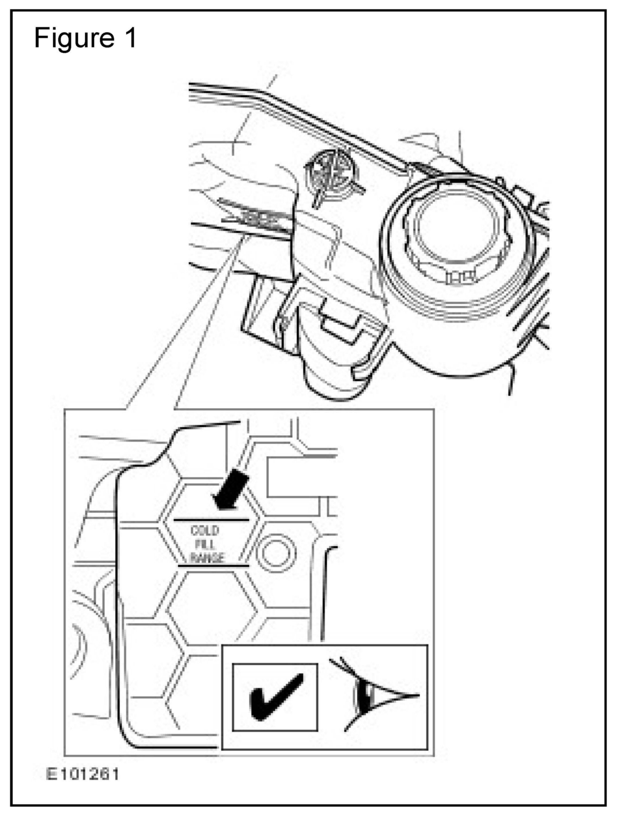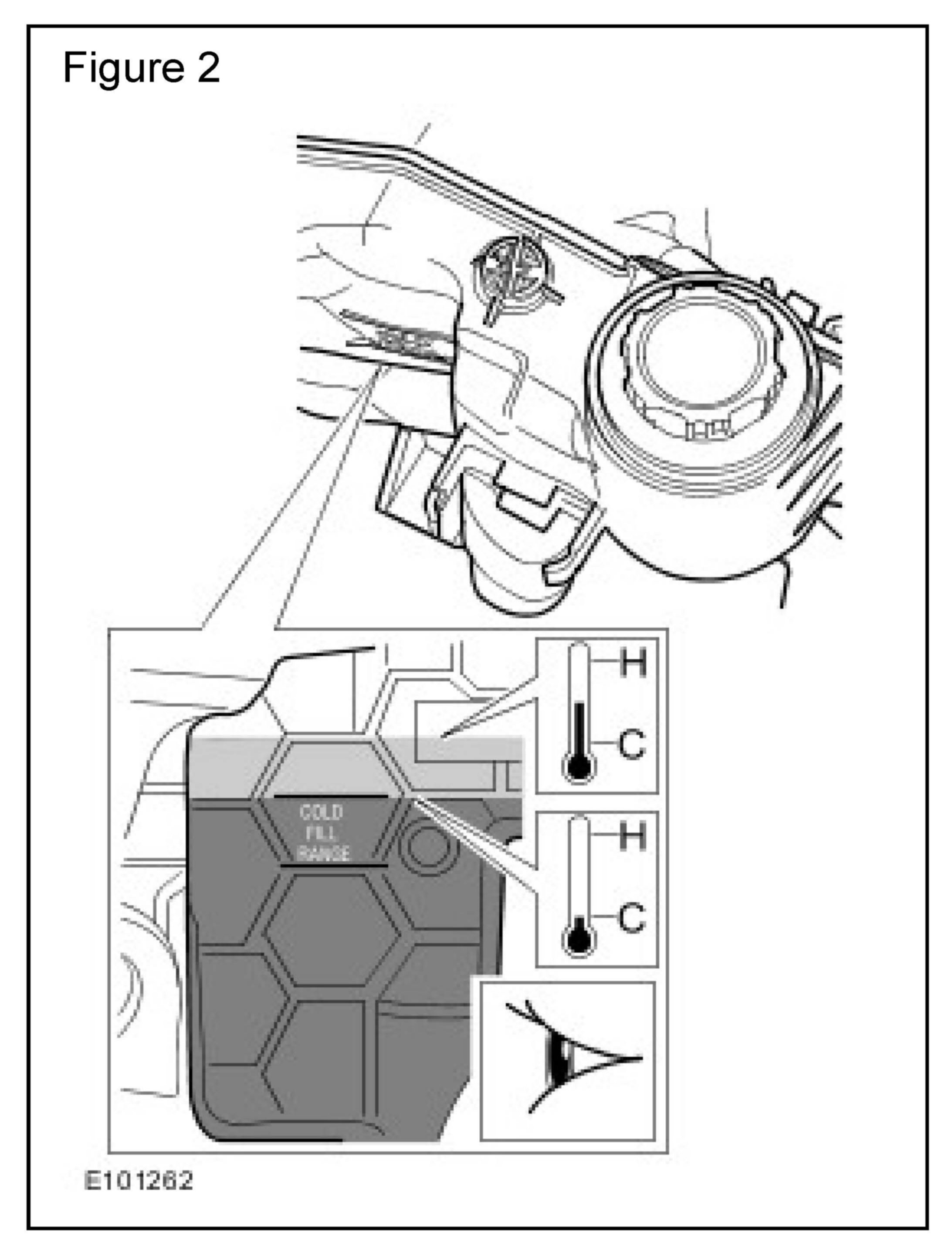 3. If the engine temperature is cold (gauge on 'C') the coolant level must be at the top of the 'COLD FILL RANGE'. (Figure 2)