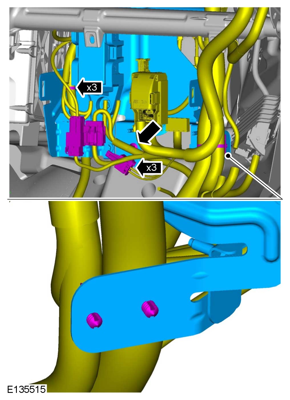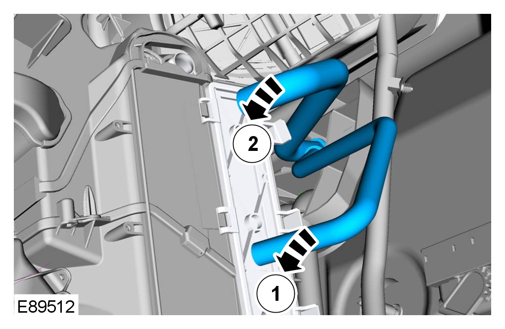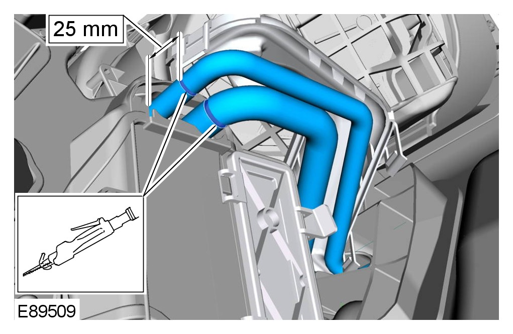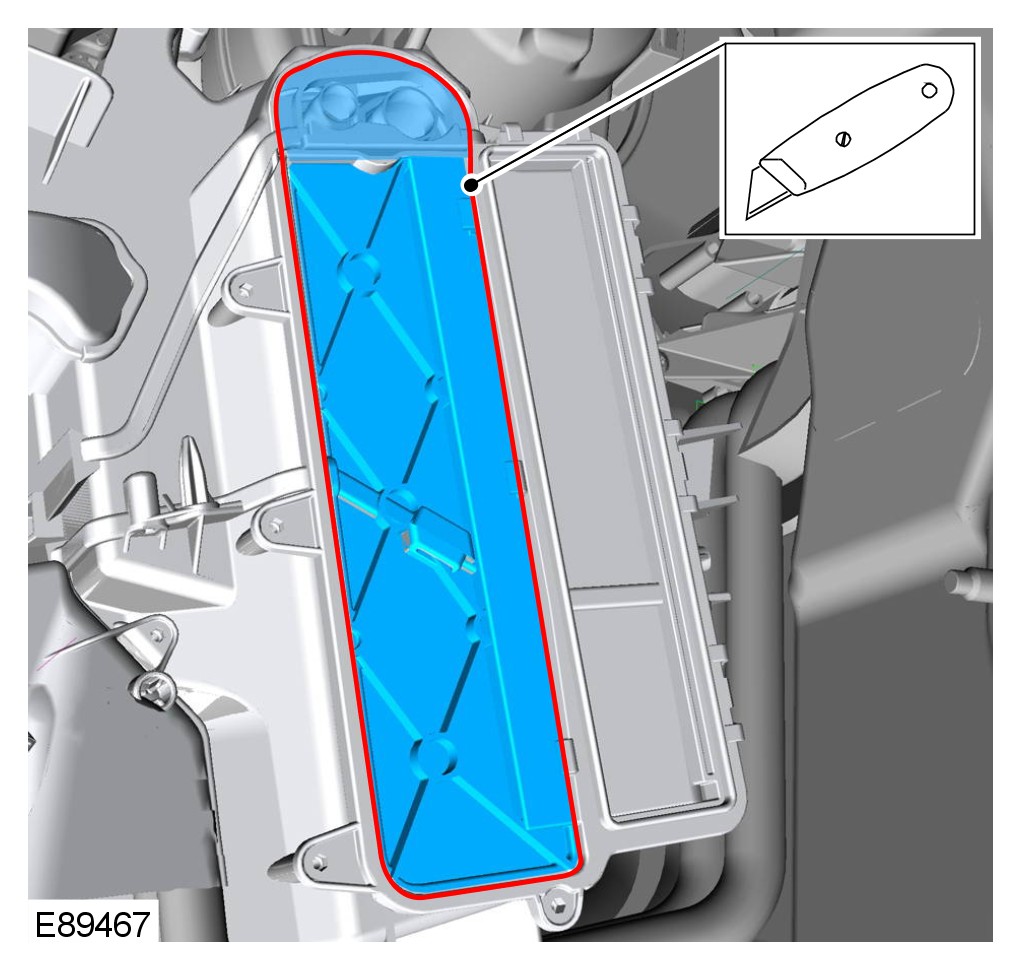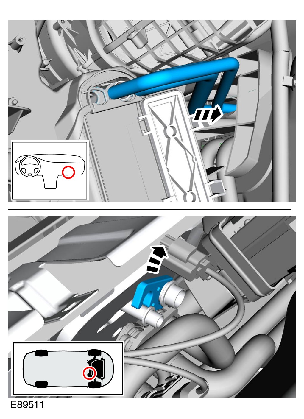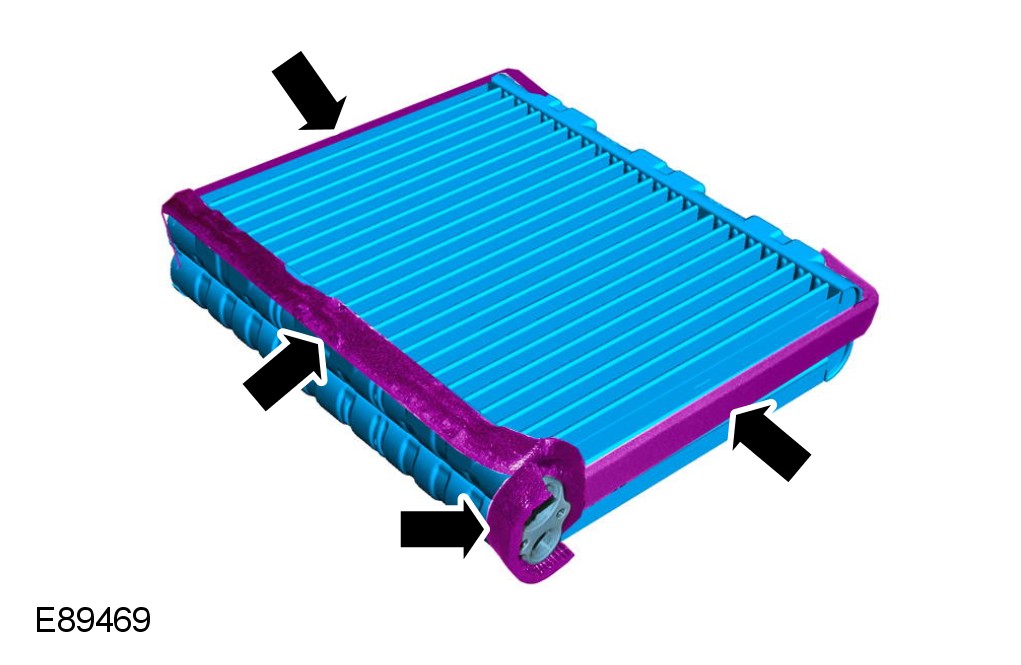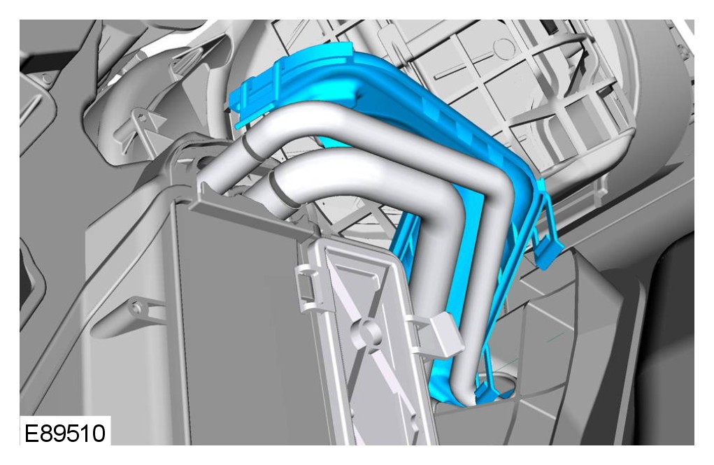 The removal of this component involves cutting an aperture in the evaporator housing wall and cutting through the high and low pressure A/C lines. A service repair kit is supplied to cover this procedure.