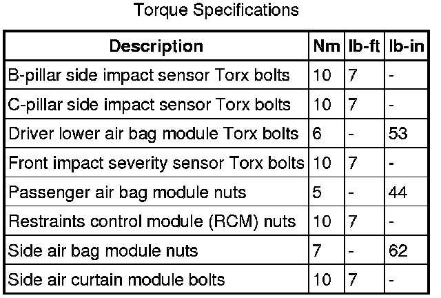 Air Bag Systems: Specifications