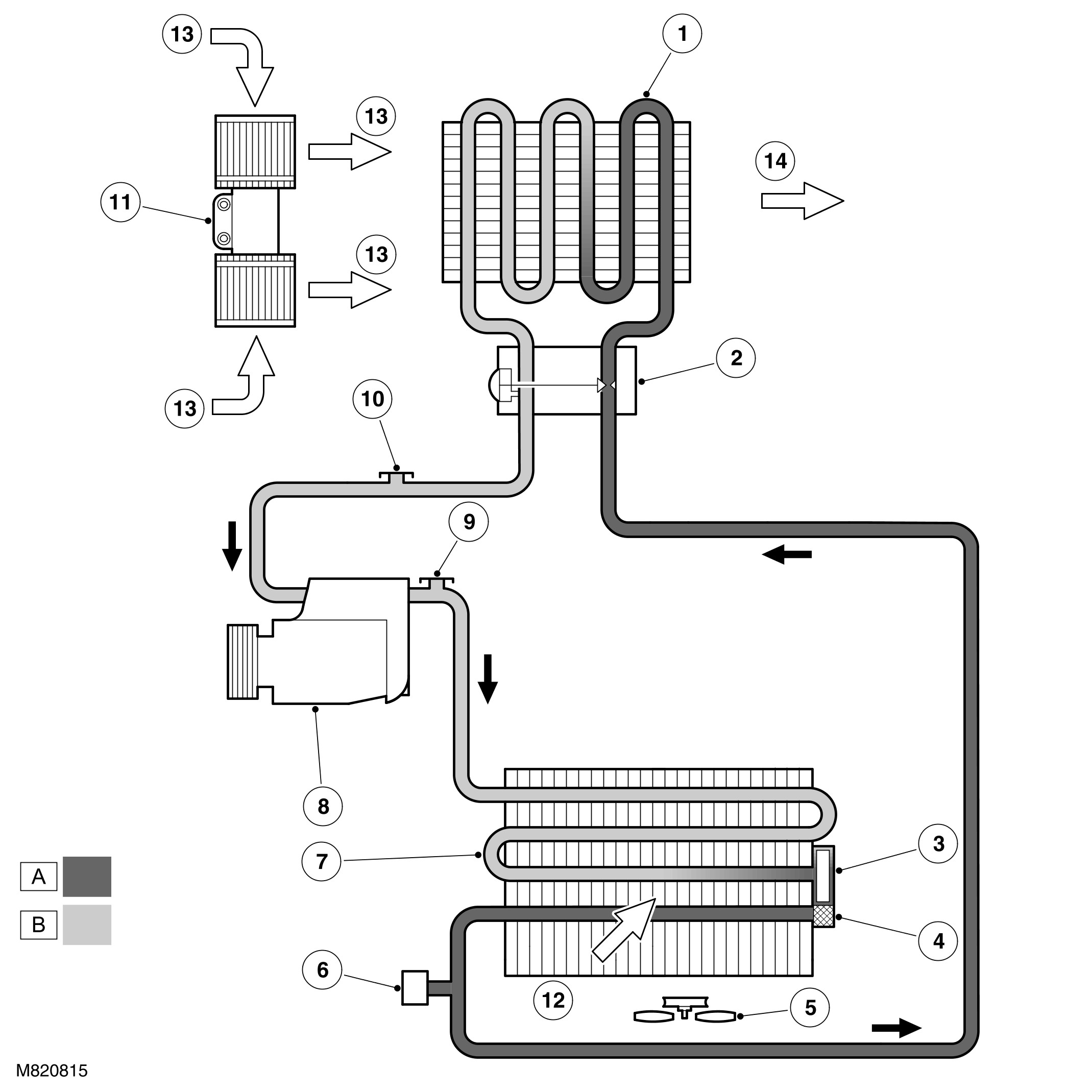 A = Refrigerant liquid; B = Refrigerant vapor