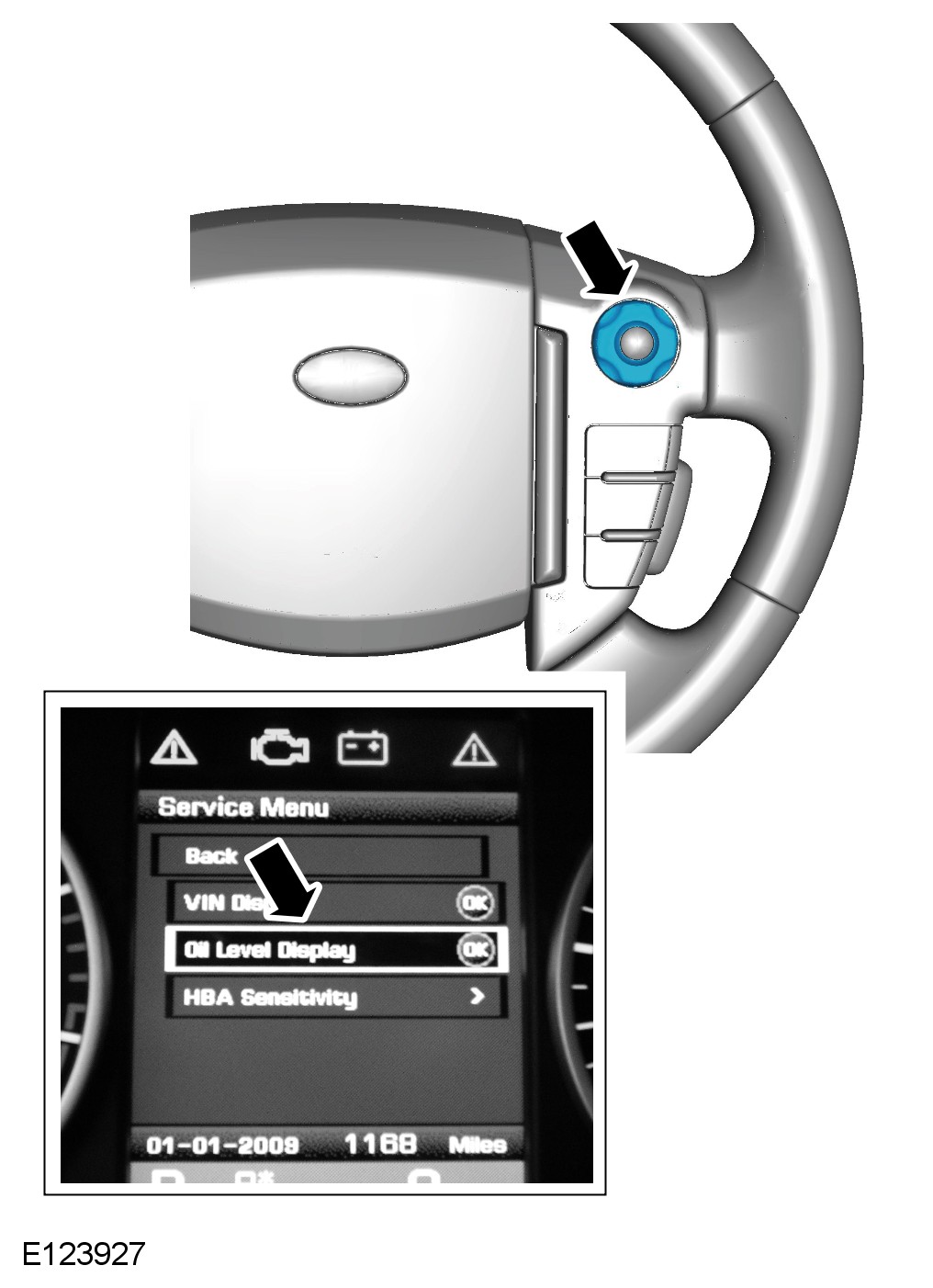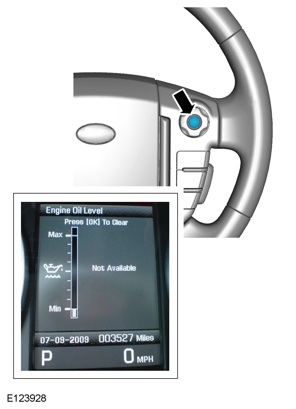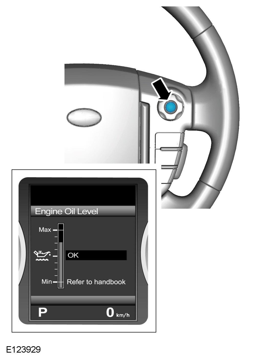 Only after having started and run the engine for 10 minutes (as indicated in Step 8), switch off the engine, then stabilizing for 10 minutes, take a reading from the oil level display and, if necessary top up with engine oil.