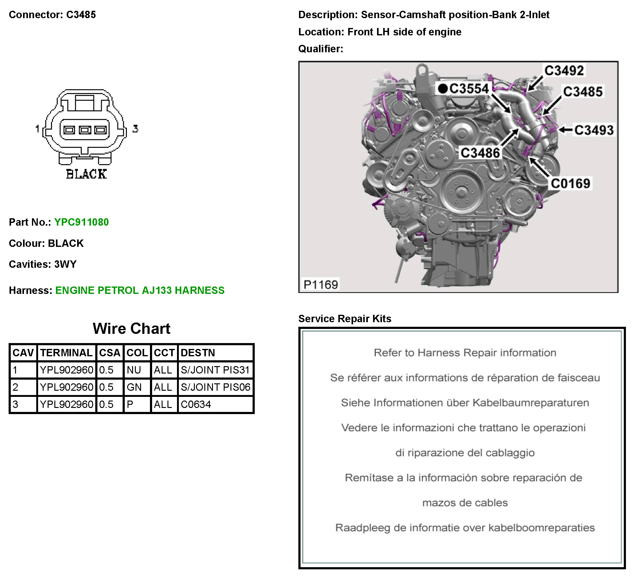 C3485 Sensor-Camshaft Position-Bank 2-Inlet