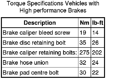 Front Disc Brake Specifications