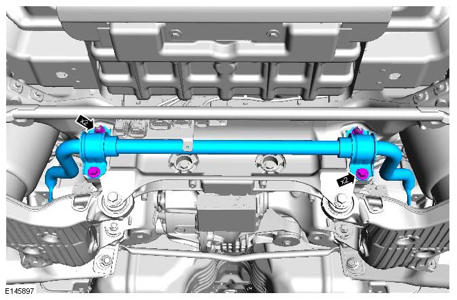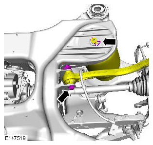 - Discard the lower control arm rear retaining nut and bolt.