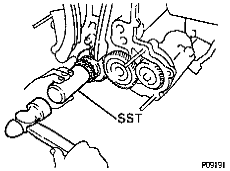 (b) Using SST Crankshaft Pulley Holding Tool # 09213 - 58012, and Companion Flange Holding Tool # 09330 - 00021 or equivalents, install and torque the pulley bolt.