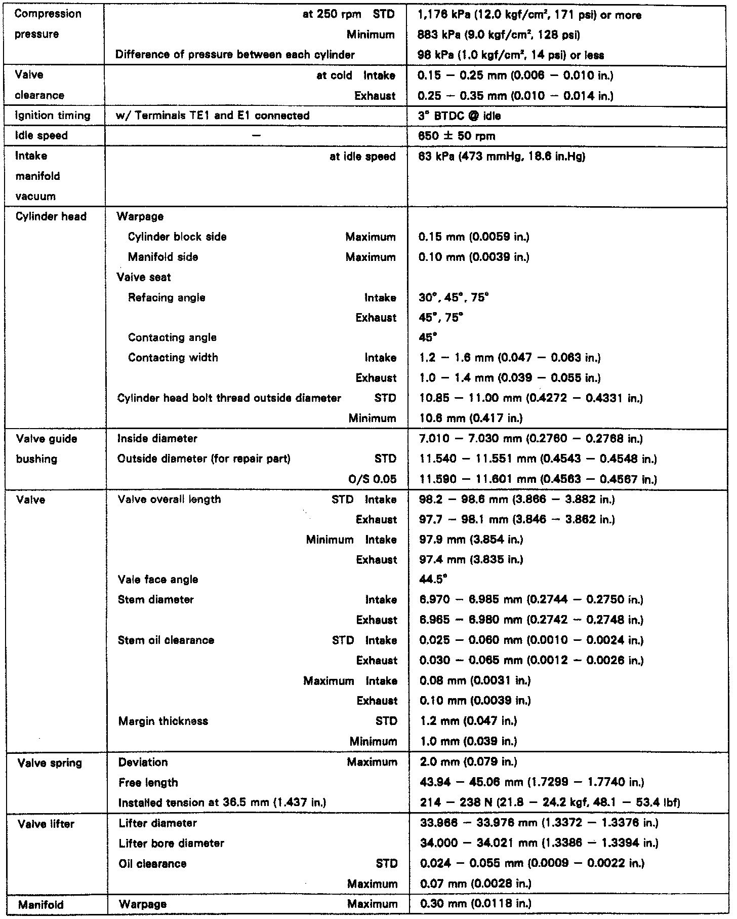 ENGINE SPECIFICATIONS