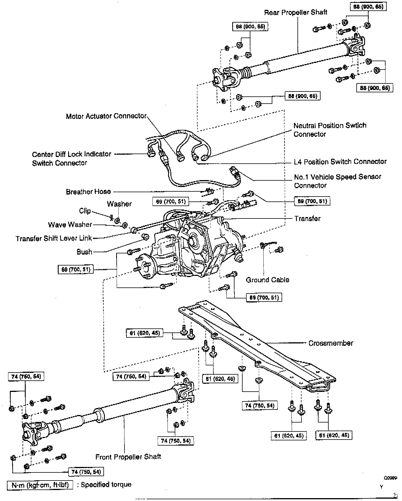 2. Remove front and rear propeller shafts.