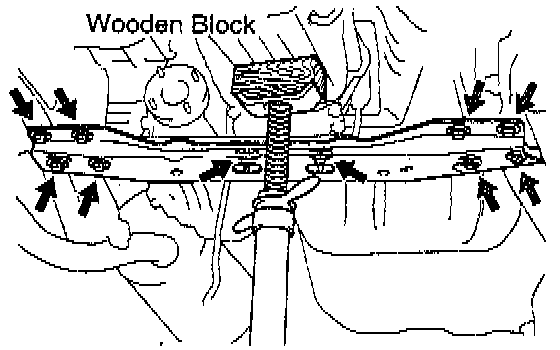 NOTICE: Use a wooden block so not to damage the transmission oil pan.