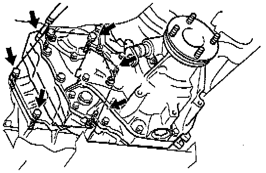 b. Remove the six transfer adaptor rear mounting bolts.