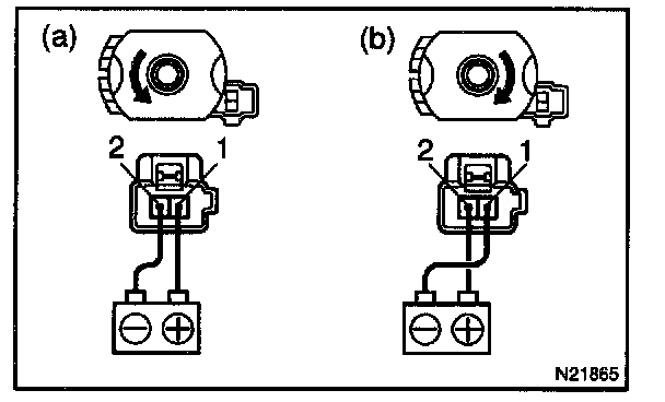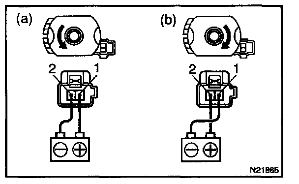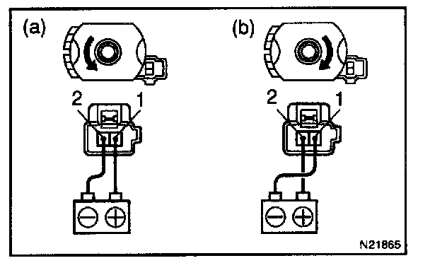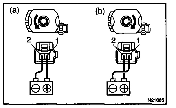 a. Connect the positive (+) lead from the battery to terminal 1 and the negative (-) lead to terminal 2, check that the motor turns counterclockwise.