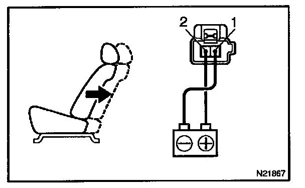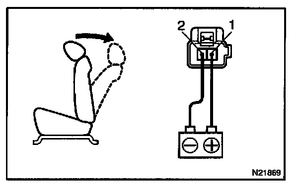 a. Connect the positive (+) lead from the battery to terminal 1 and the negative (-) lead to terminal 2, check that the lumbar support moves to release side.