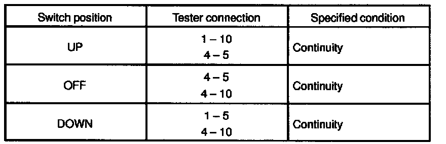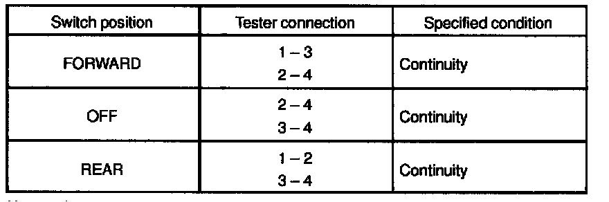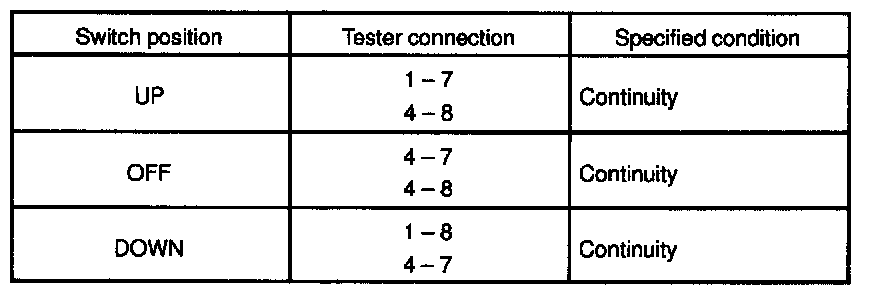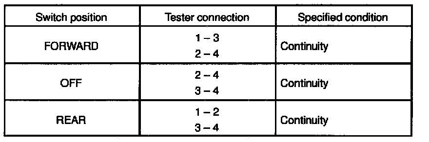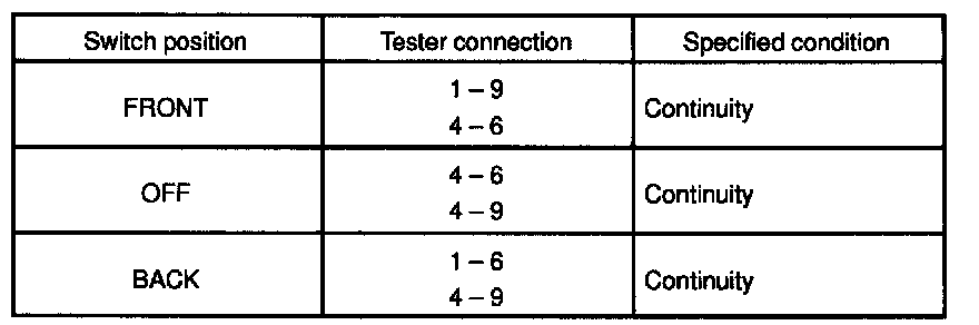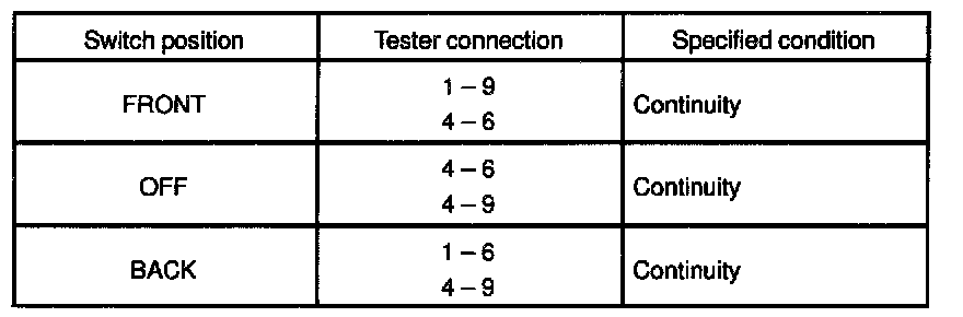 If continuity is not as specified, replace the switch.