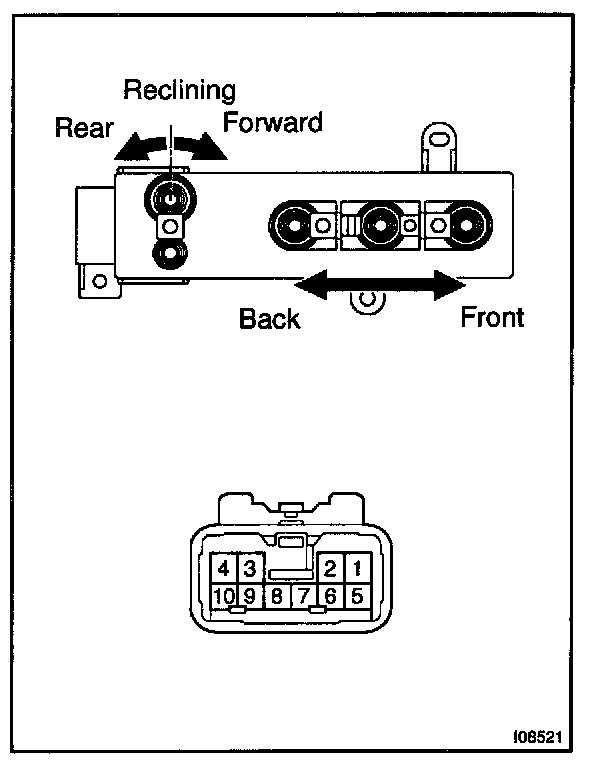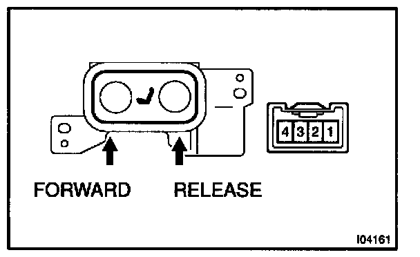 a. Connect the positive (+) lead from the battery to terminal 2 and the negative (-) lead to terminal 1 on the lumbar support motor connector and move the lumbar support to front end position.