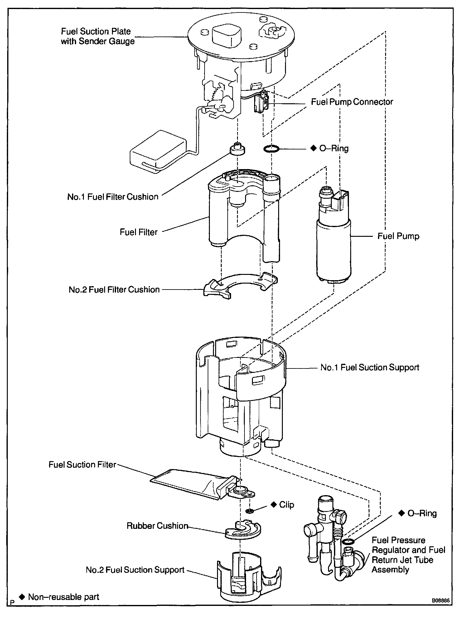 Fuel Filter & Fuel Sock located on the Fuel Pump Assembly