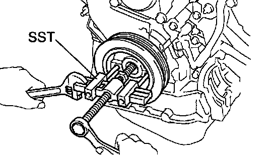 b. Using SST, remove the crankshaft timing pulley.