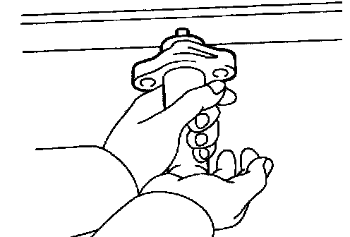 b. Hold the tensioner with both hands and push the push rod strongly as shown to check that it doesn't move. If the push rod moves, replace the tensioner.