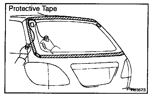 d. Hold the windshield glass in place securely with a protective tape or equivalent until the adhesive hardens.