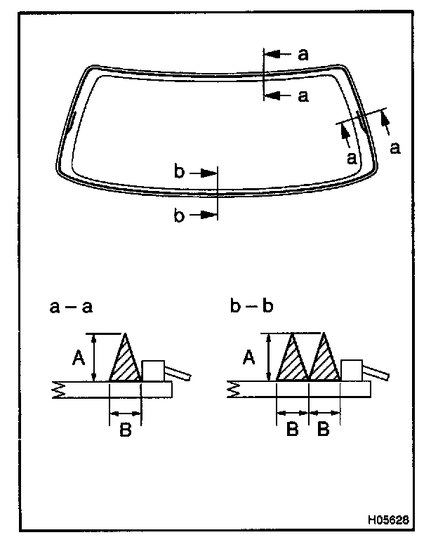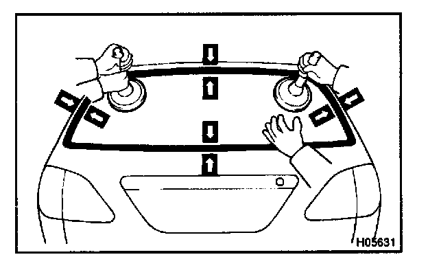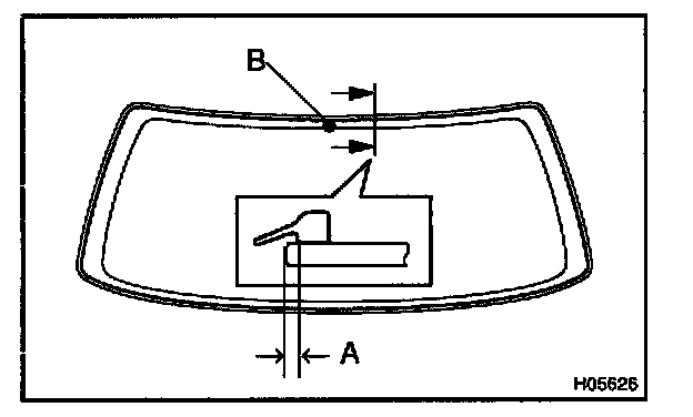- Install the back window outside moulding from the center of the glass at the upper side of the vehicle. (Position B)