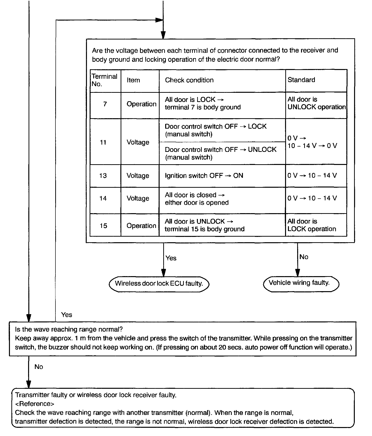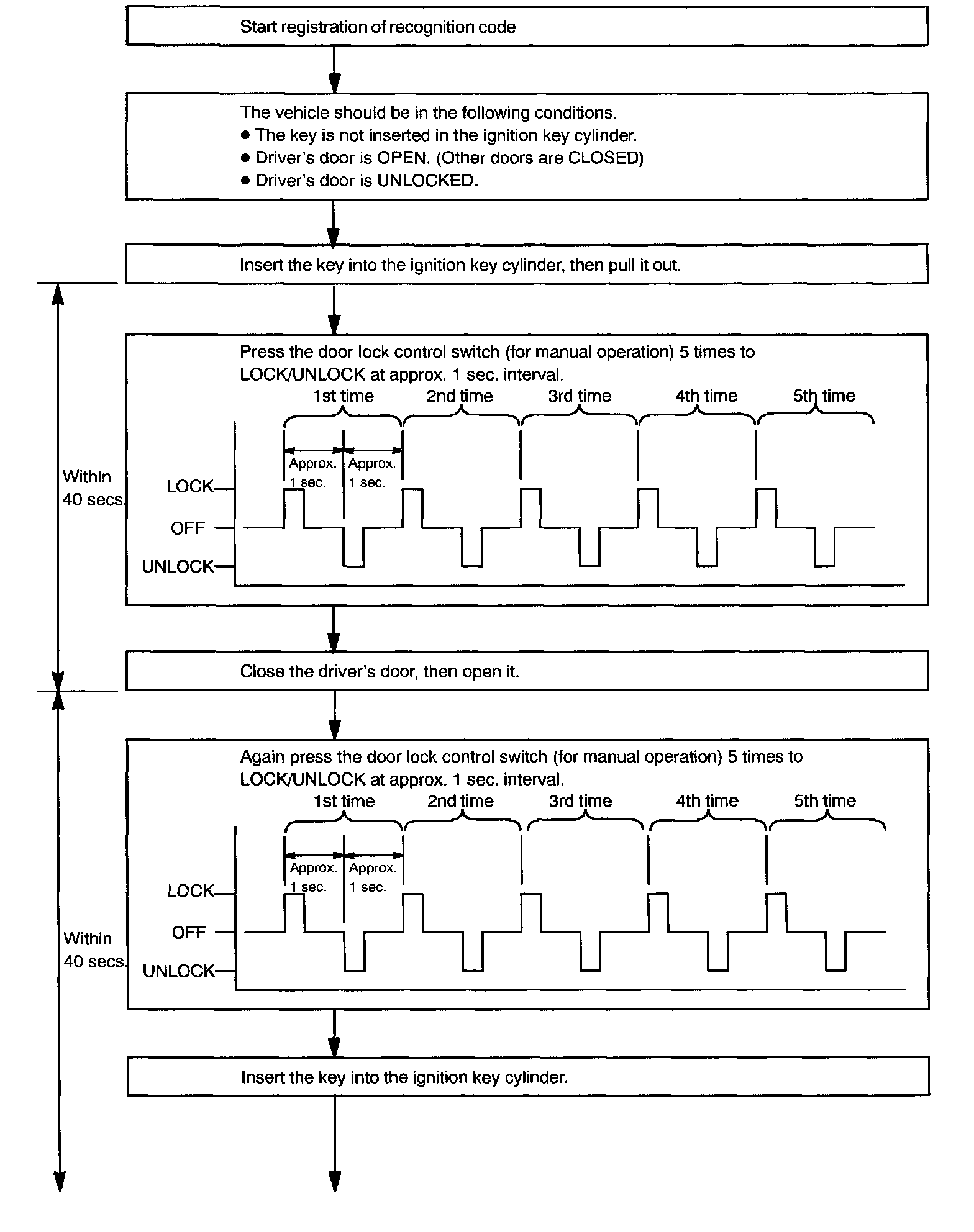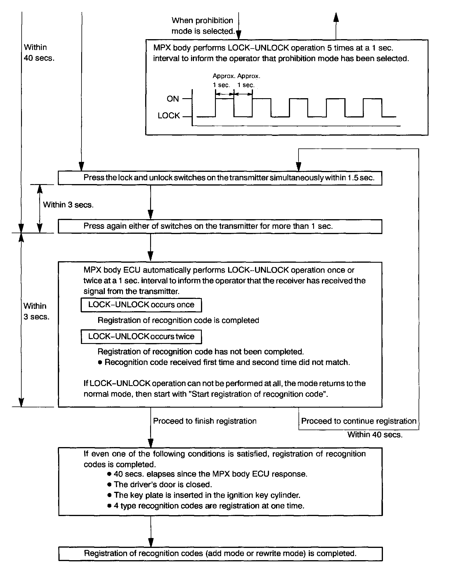 b. Follow the charts shown above to register the transmitter recognition code at the wireless door lock control receiver.