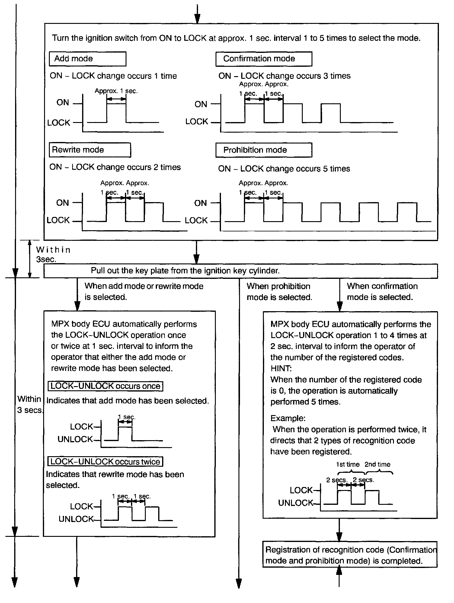 - The confirmation mode is for confirming how many recognition codes are already registered before you register additional recognition codes.