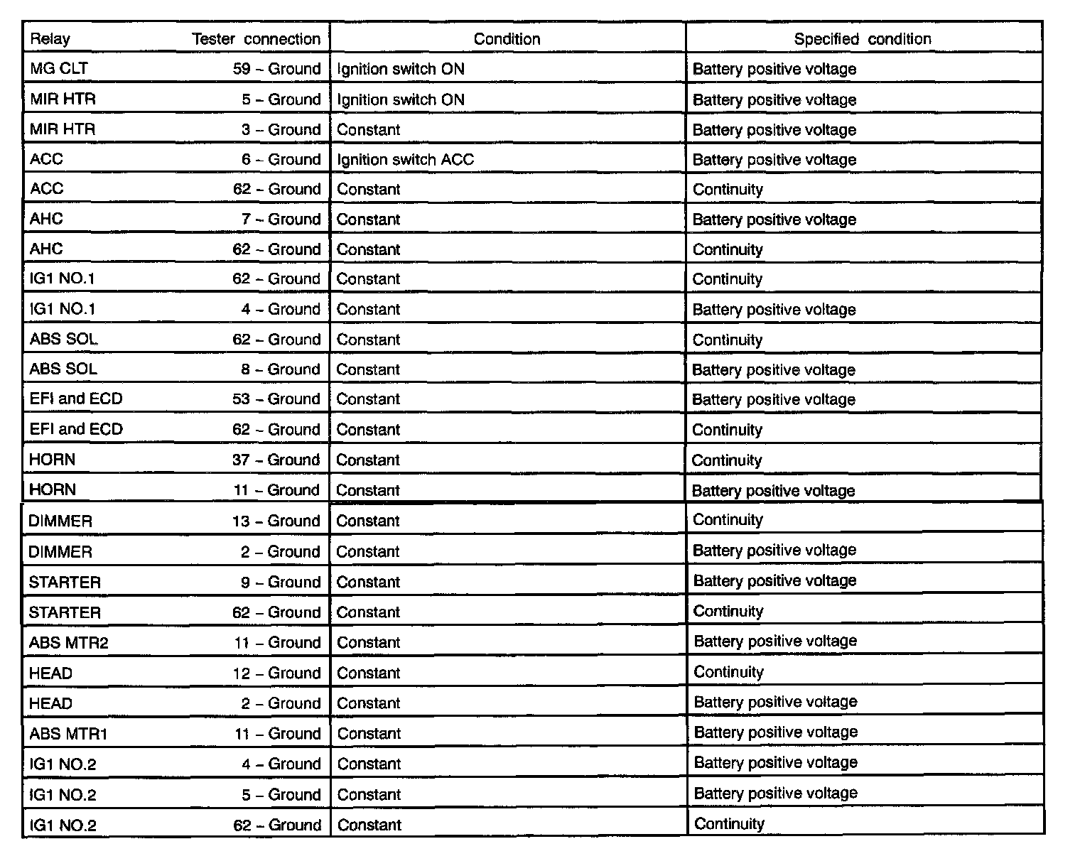 b. Remove the relay from the junction block and inspect the connector on junction block side.