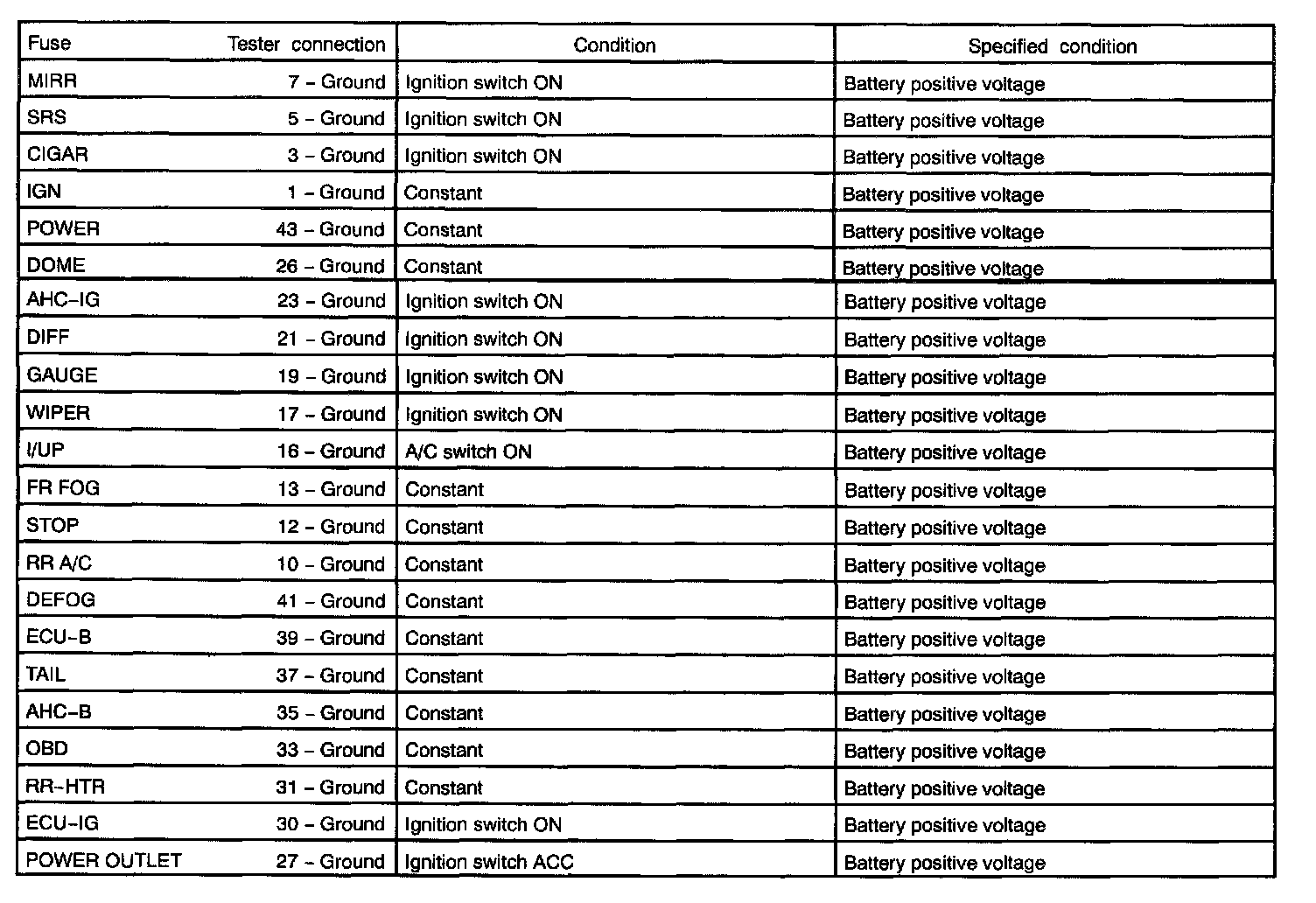 2. INSPECT DRIVER SIDE JUNCTION BLOCK FUSE CIRCUIT