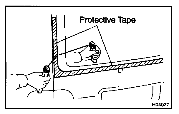 b. Hold back door glass in place securely with protective tape or equivalent until the adhesive hardens.