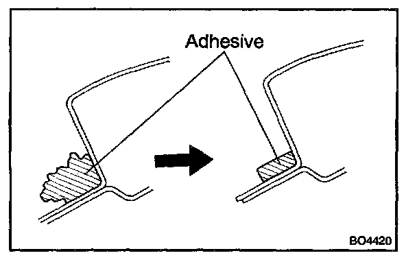 b. Cut off the old adhesive around the clips and spacers installation area.