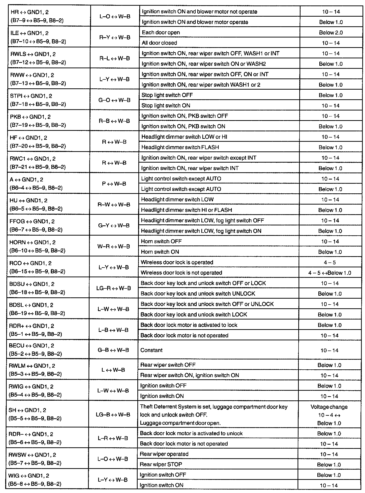 Pinout Values and Diagnostic Parameters