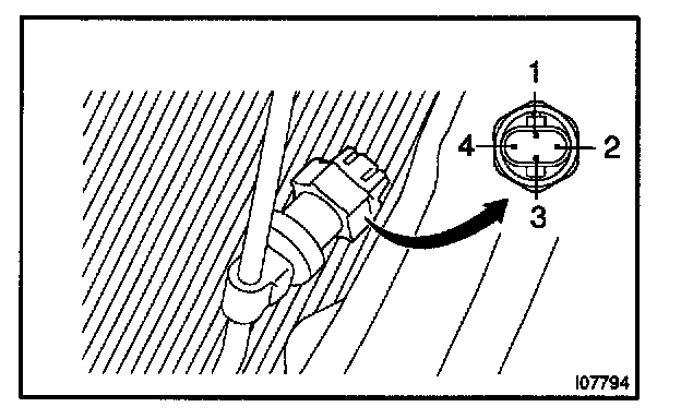 1. Connect the positive (+) lead from the ohmmeter to terminal 4 and the negative (-) lead to terminal 1