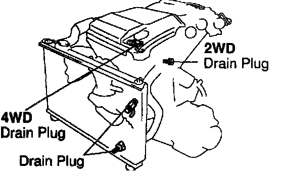 RH engine drain plug on cylinder block side cover (2WD): 7 Nm (70 kgf-cm, 61 inch lbs.)