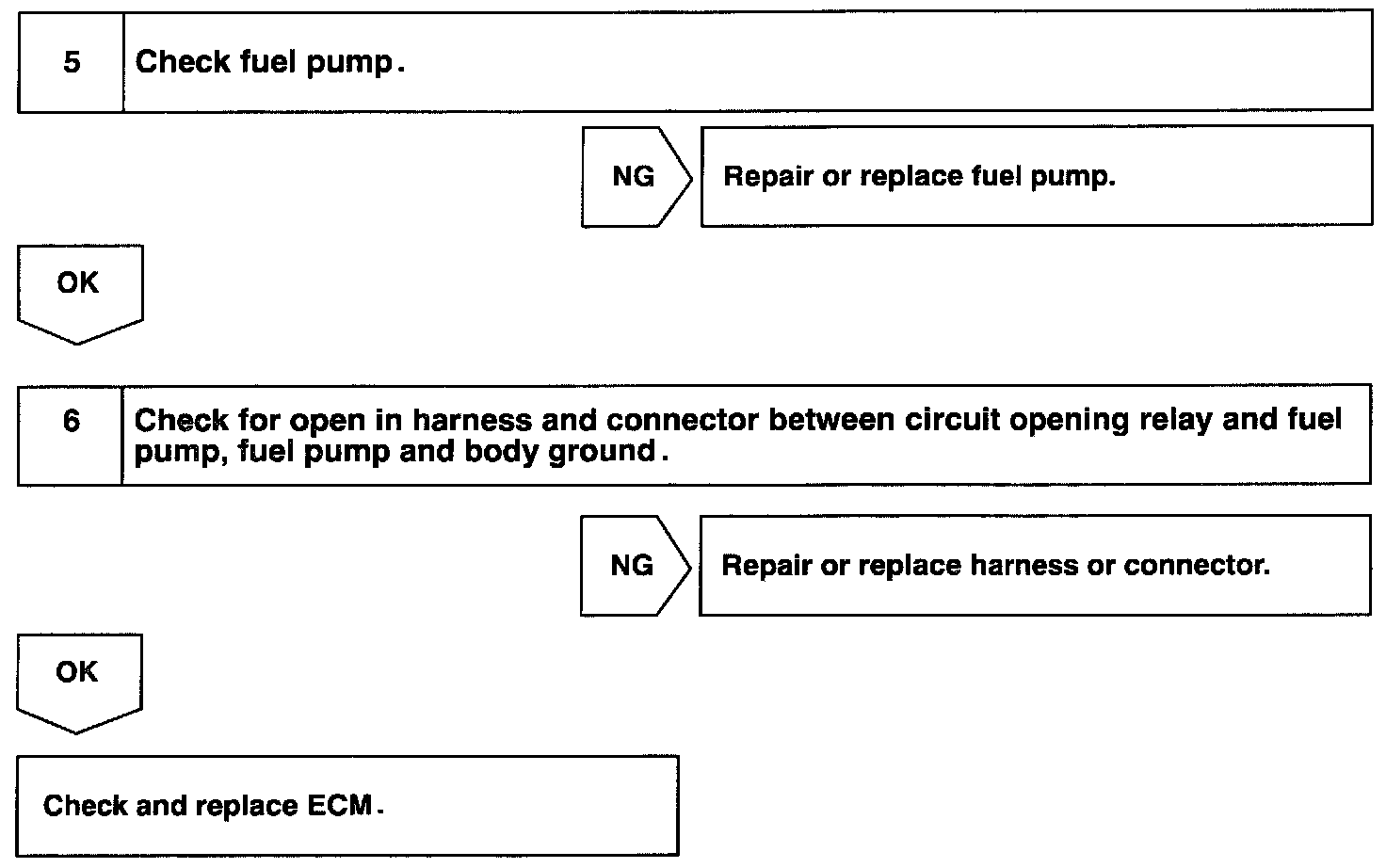While the NE signal is generated (engine running), the ECM keeps Tr ON (circuit opening relay ON) and the fuel pump also keeps operating.