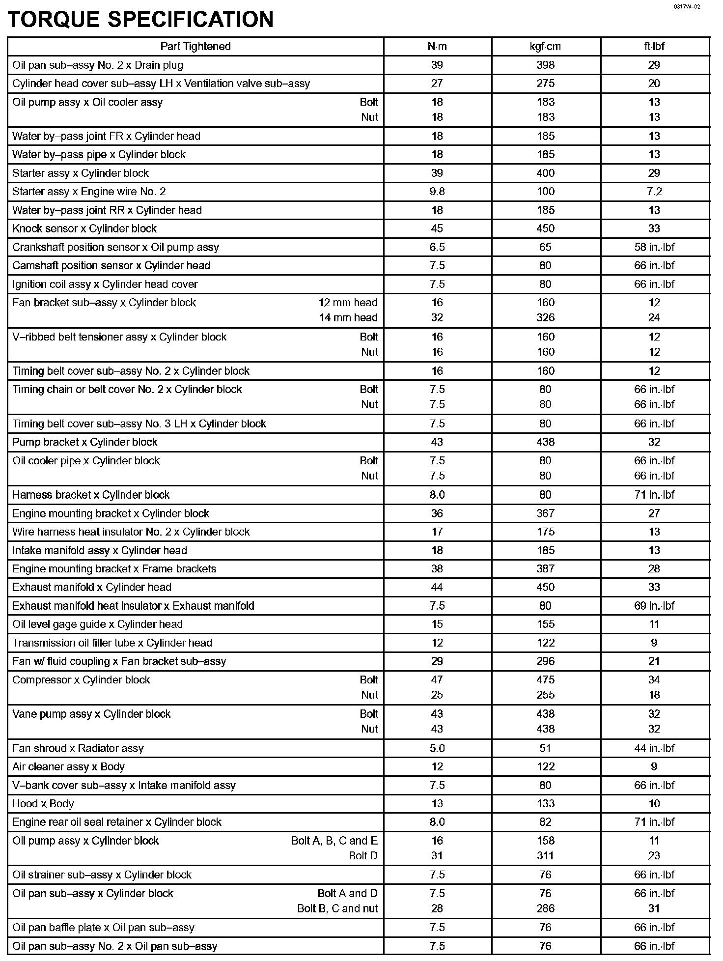 Engine Mechanical - Torque Specification Part 2: