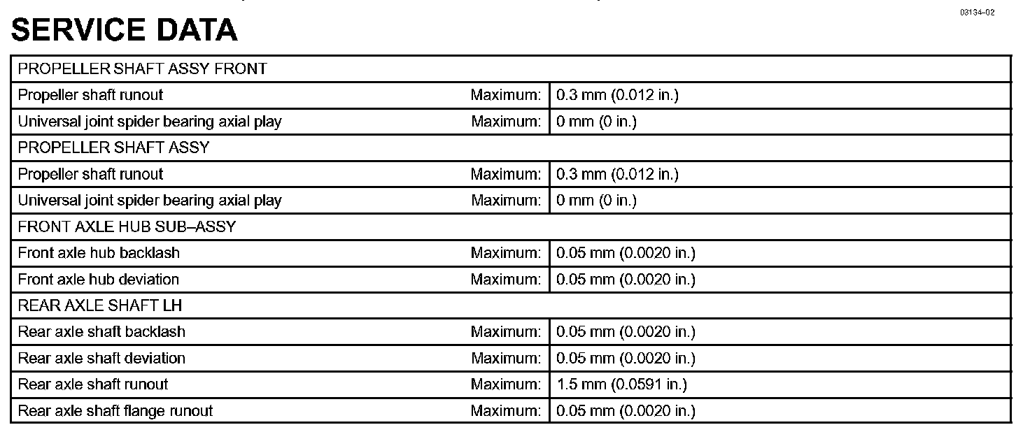 Drive Shaft, Propeller Shaft, Axle - Service Data:
