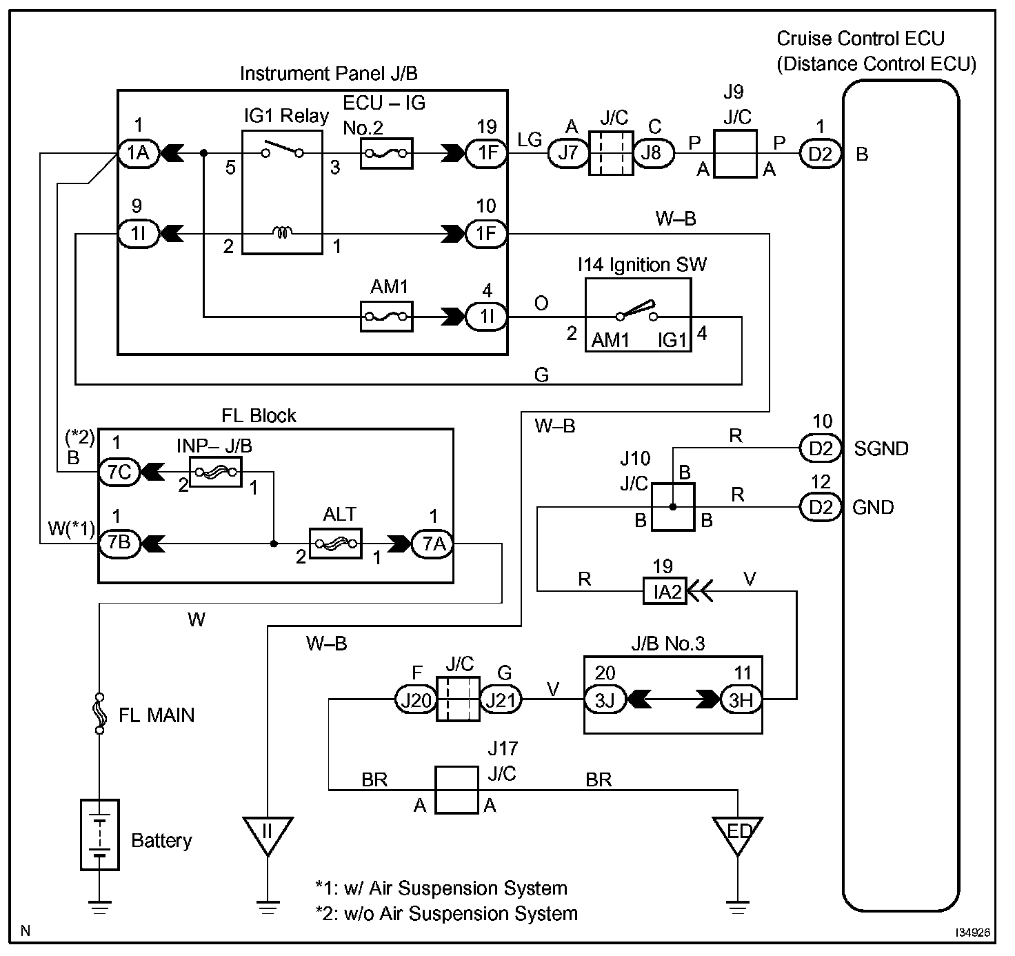 Distance Control ECU Power Source Circuit