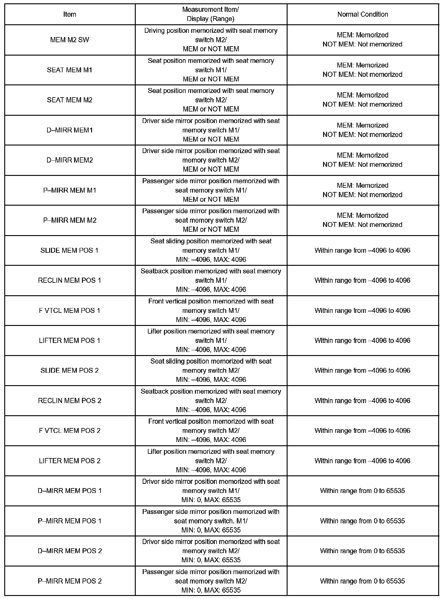 DATA LISTHINT: Using the DATA LIST displayed on the hand-held tester, you can read the value of the switch, sensor, etc. without parts removal. Reading the DATA LIST as the first step of troubleshooting is one way to shorten the labor time.