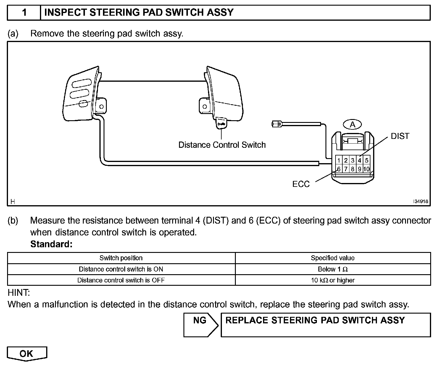 This switch sets the vehicle-to-vehicle distance mode.