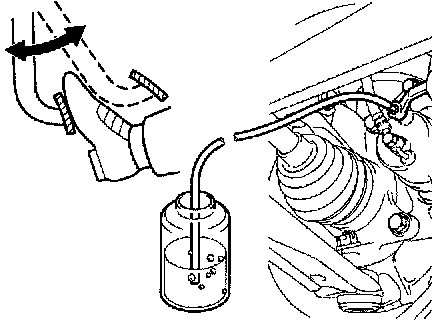 ^ During this procedure, the pedal seems heavy, but completely depress it so that the brake fluid comes out from the bleeder plug.